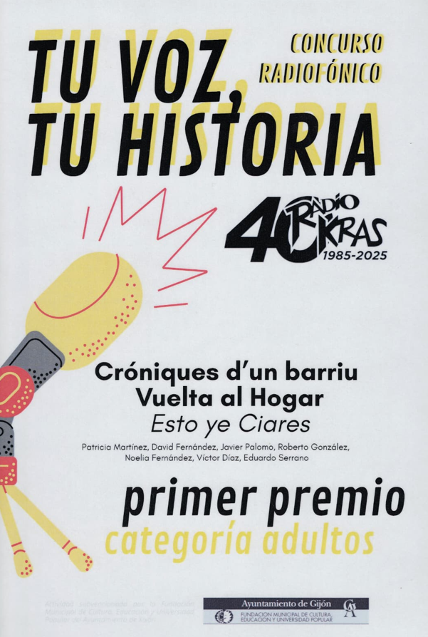 Esta crónica y les voces que la componen foi premiada nel concursu «Tu voz, tu Historia» de Radio Kras, la radio popular xixonesa que durante 40 años mos lleva averando l’actualidá y la reflexón a les ondes.